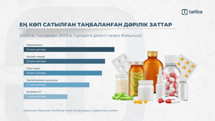 Қазақстанда бір жыл ішінде таңбаланған дәрілердің ішінде парацетамол сату көлемі бойынша көш бастады: барлығы 3 миллионға жуық қаптама сатылған. Одан кейінгі орындарда натрий хлориді, этил спирті, ацетилсалицил қышқылы және Цитрамон П тұр деп хабарлайды Juzmedia.kz.